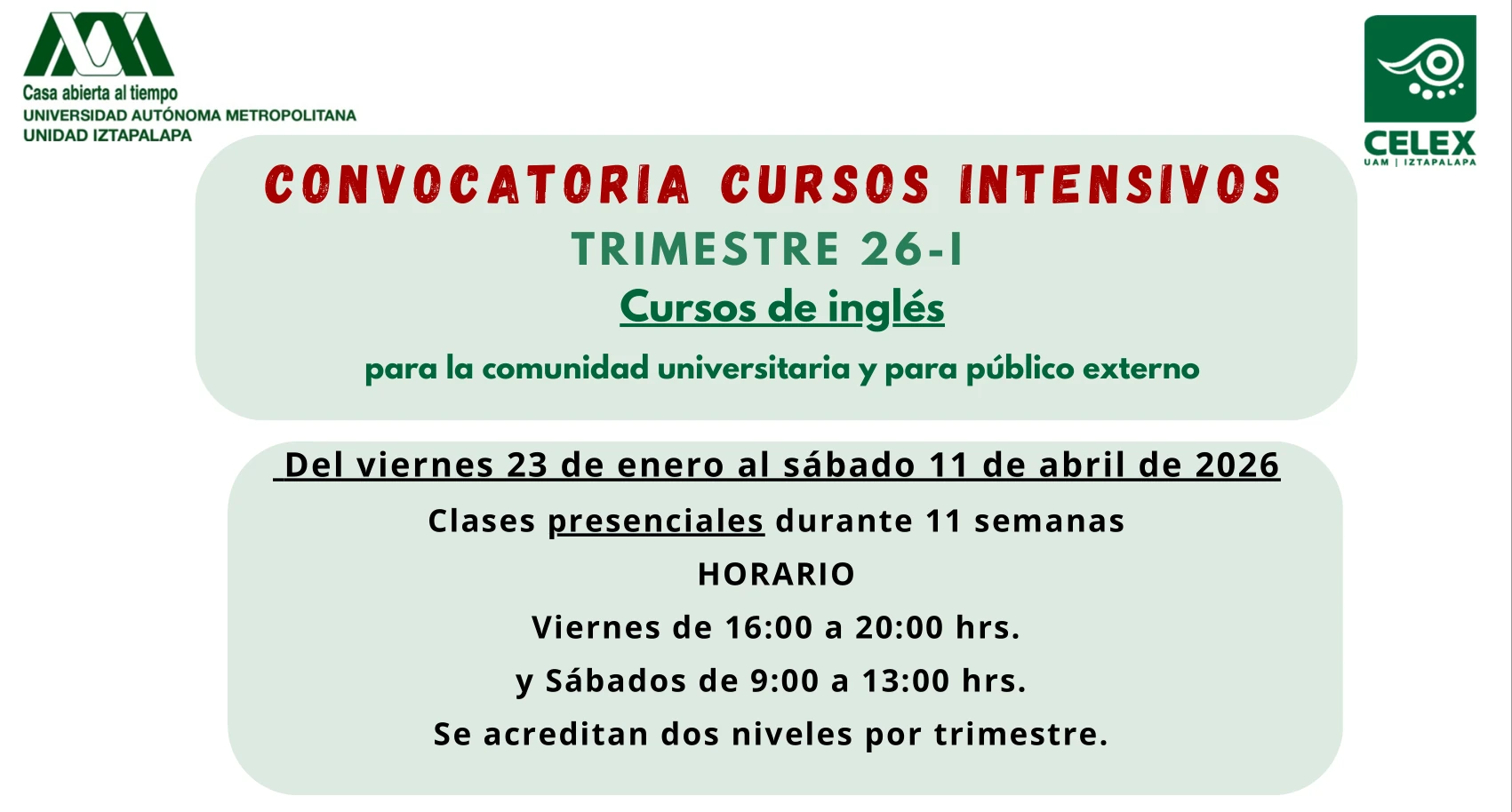 Cursos sabatinos de inglés 26-I
